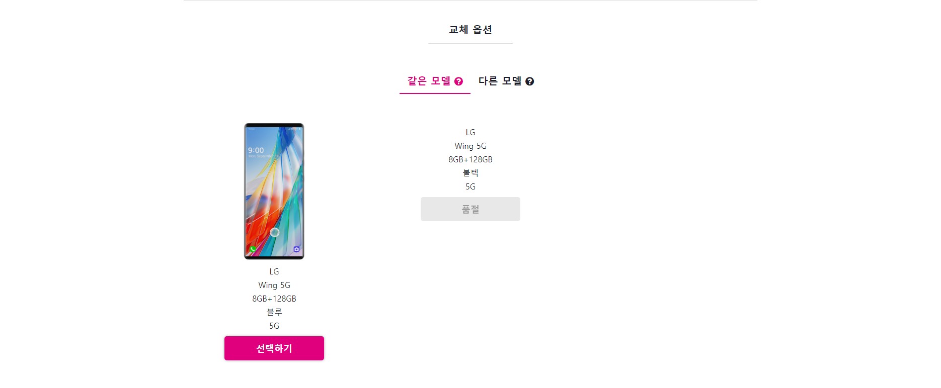 아이폰으로도 교체가 가능하다고 했는데 윙 출고가와 아이폰 출고가가 맞지 않아 표시되지 않는것 같습니다.