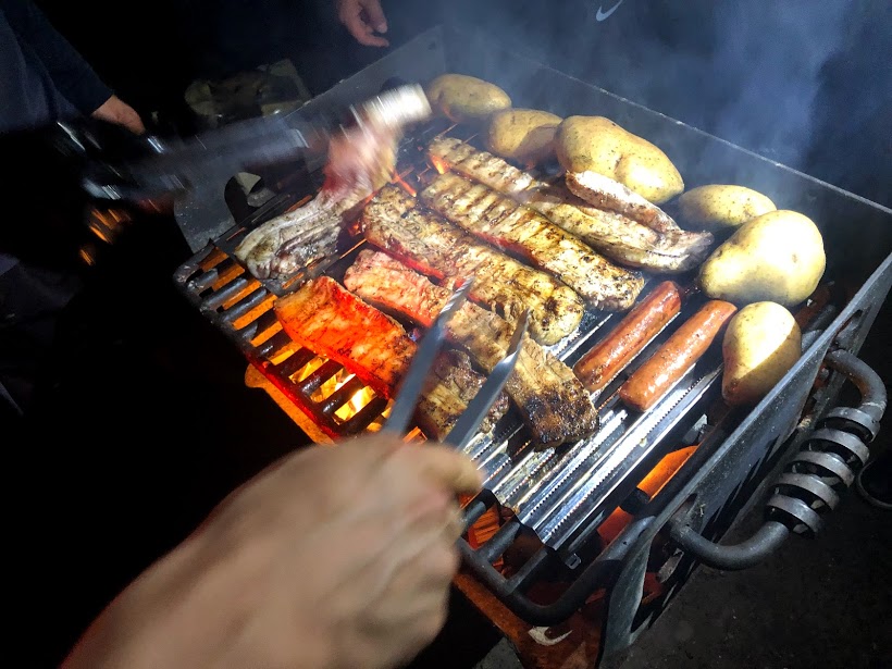 고기 기름이 떨어지기 시작하니 순식간에 불이 커지고, 고기가 익어갑니다.