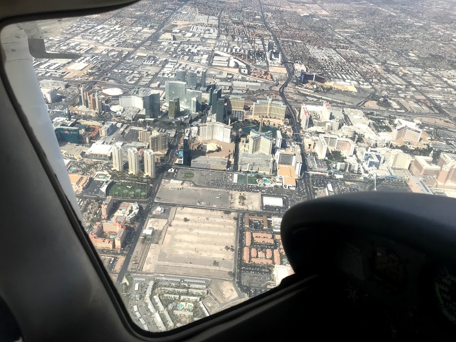 라스베이거스 Class B 진입 전에 영공 통과 허가를 받으려고 무선 통신을 하는데, 느닷없이 베가스스트릿 투어를 할것이냐고 물어봅니다. 평소에는 항공 교통량이 많아서 영공통과 허가도 잘 안내어 주는데 직접 투어까지 시켜준다니 연신 감사를 외치고 투어를 요청했습니다.