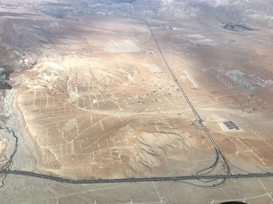 가는 길은 사막이라 높은 산도 없고 항공기도 많이 없어 심심하기 까지 합니다. 고도를 높이 올려서 갔더니 풍력발전기가 장난감처럼 보입니다.